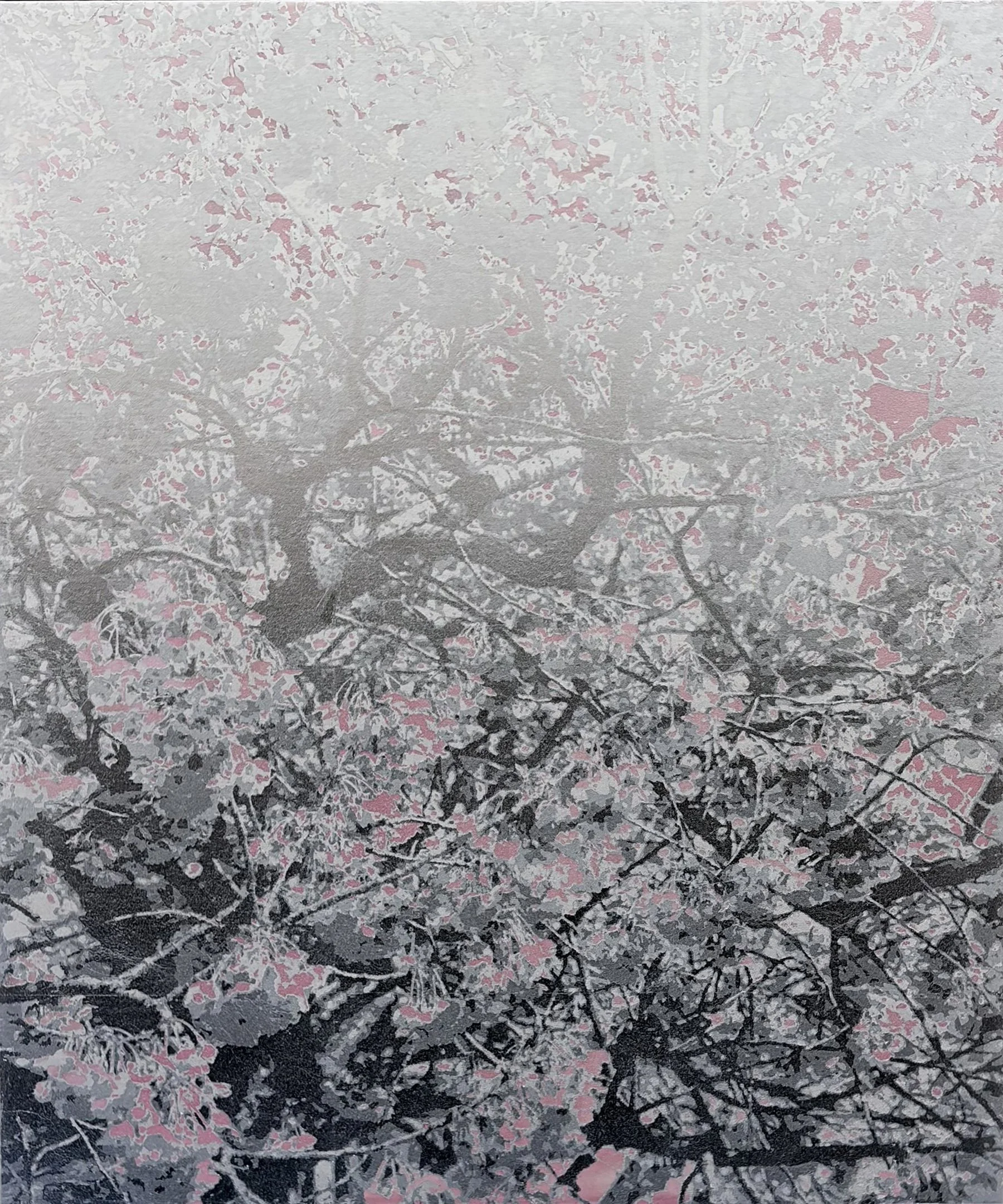 NOJO often draws inspiration from unnamed landscapes—forests, branches, and shrubs—inviting viewers to revisit familiar yet elusive memories through his depiction of deep, mysterious woods. His recent solo exhibitions in London, Tokyo, and Taiwan emphasize not the literal representation of landscapes, but the flickering, mist-like visual experience. Through this approach, the uncertainty of memory and the subjectivity of perception become central to his artistic exploration.