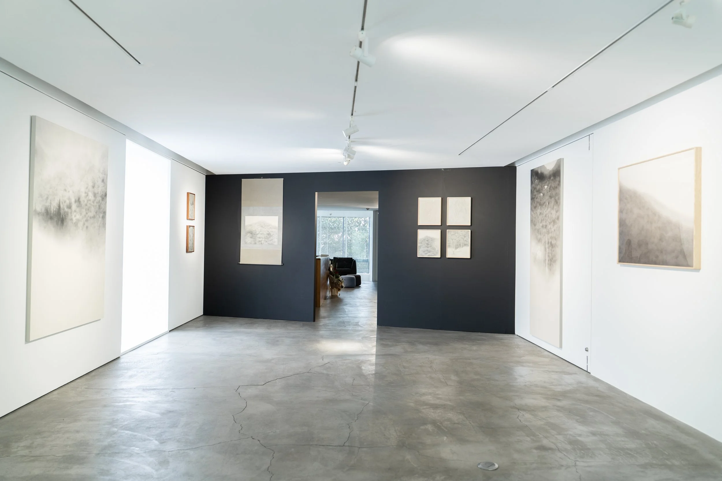 在李英皇的筆下,夢境不止於虛無,而是化為如霧似雲的形體,時隱時現,流動於山林間。他以絹本為載體,層層敷染墨色,營造沉靜內斂的氛圍,使畫面游走於現實與潛意識之間,如同時間在靜謐中悄然流轉。在清晨薄霧與夜色寂靜中,李英皇描繪的不只是自然景物,更是心靈的棲居之所。