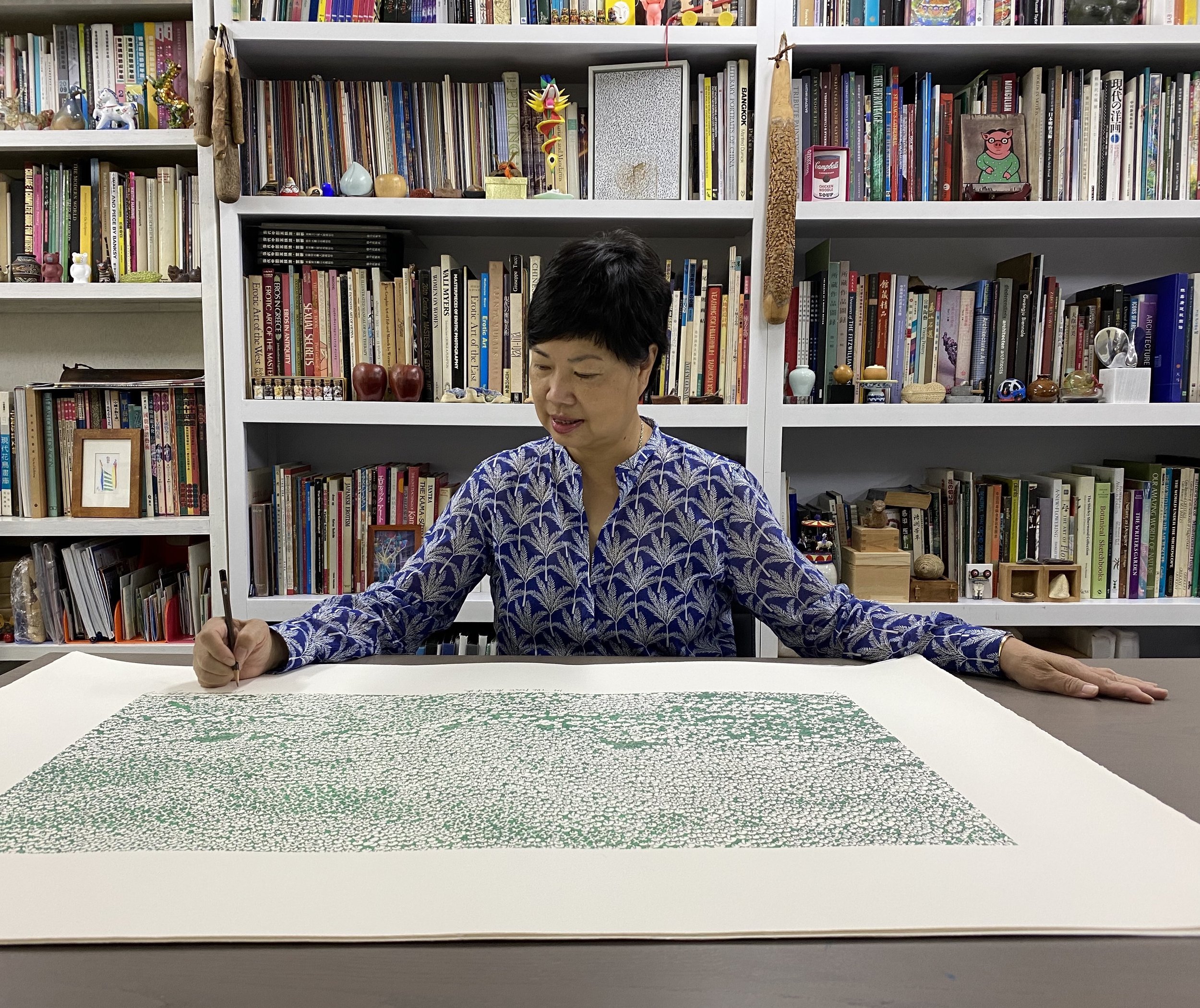 In 1994, she returned to Hong Kong and settled there, establishing her own studio where she offered art education courses. She has since been engaged in the creation of contemporary ink painting and printmaking, and has also realized a number of public art installations.